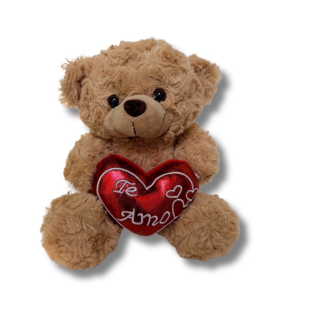 PELUCHE ENCANTADOR CAFE CON CORAZON Y TEXTO TE AMO. 19 CM.