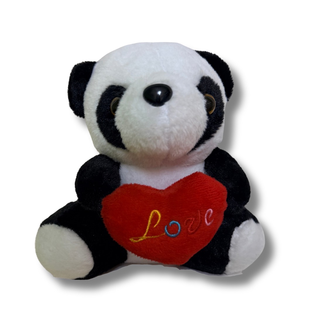 HERMOSO PELUCHE PANDA CON CORAZON Y TEXTO LOVE. ALTURA 19 CM.