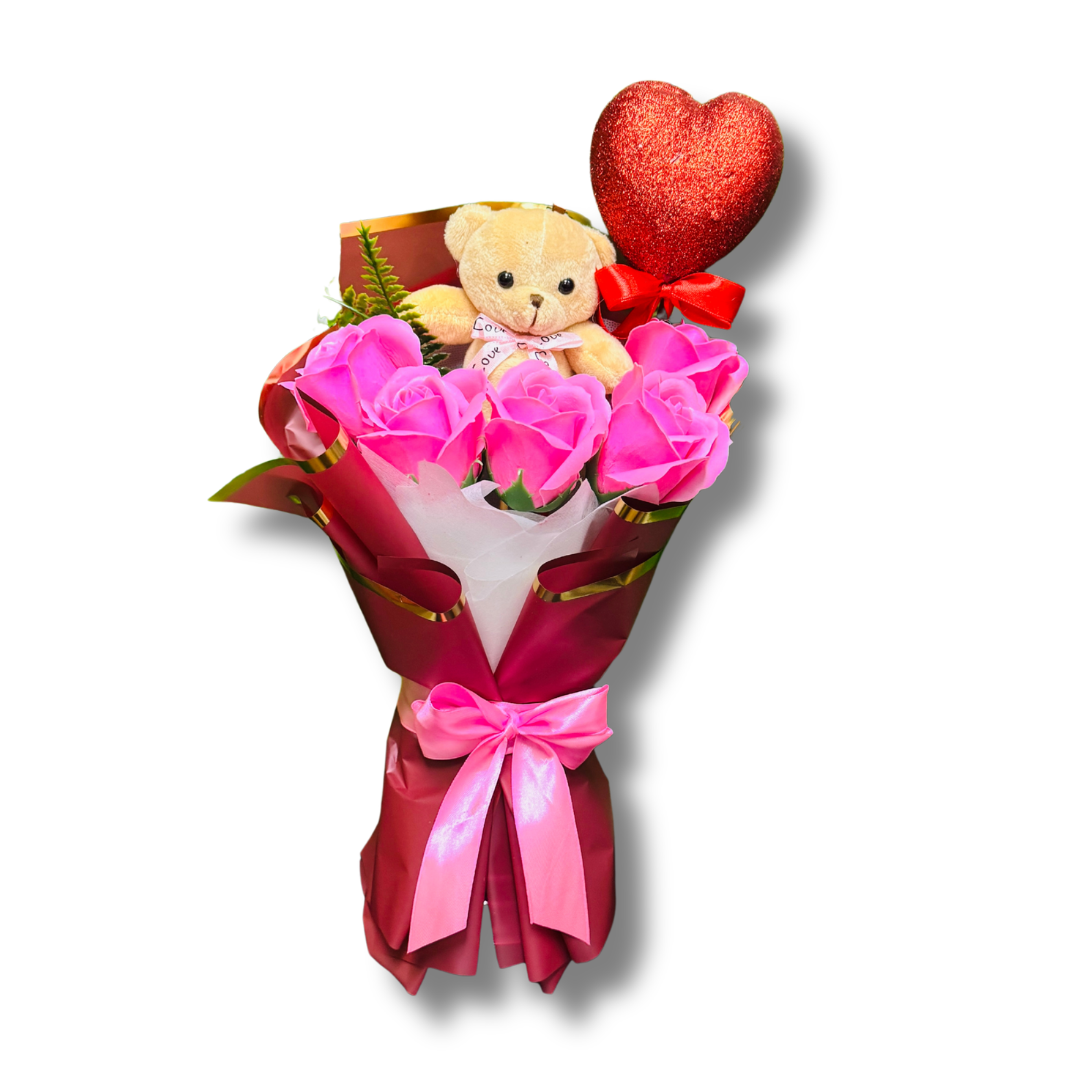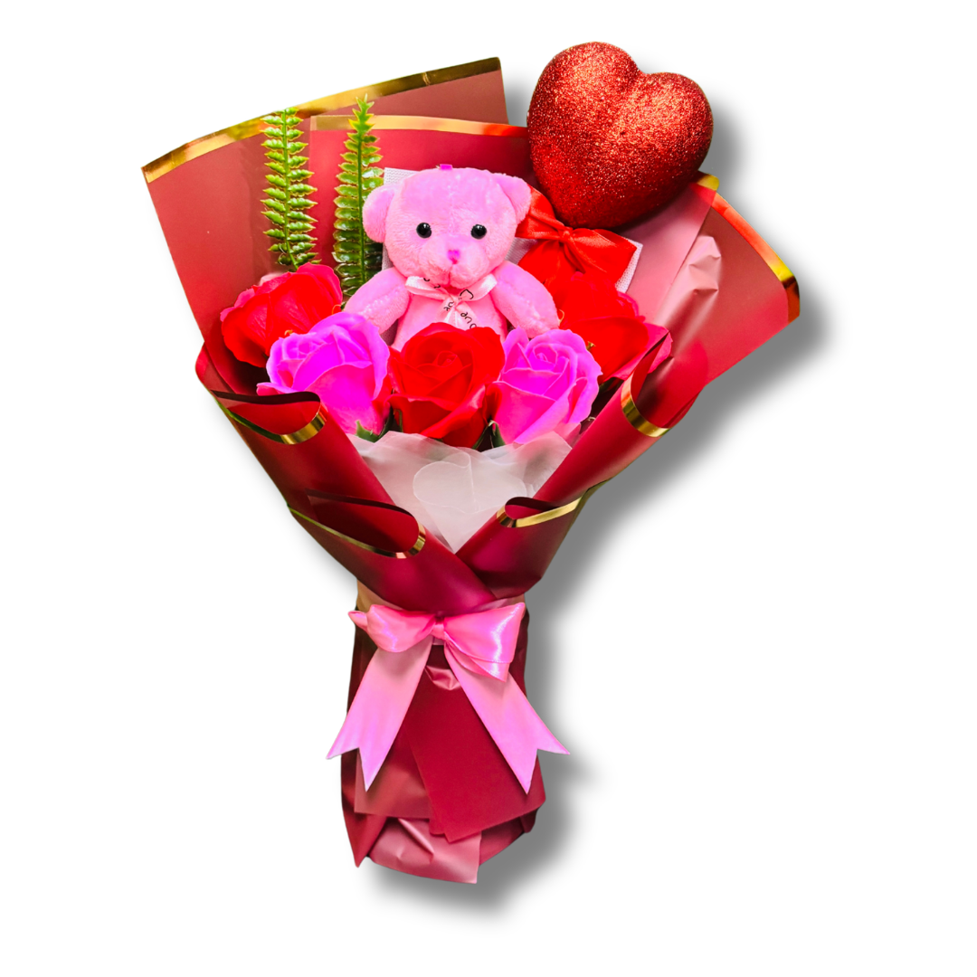 RAMO DE ROSAS DE JABON MIX Y OSITO (S)